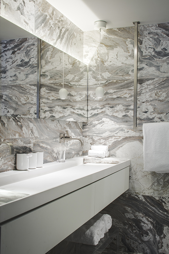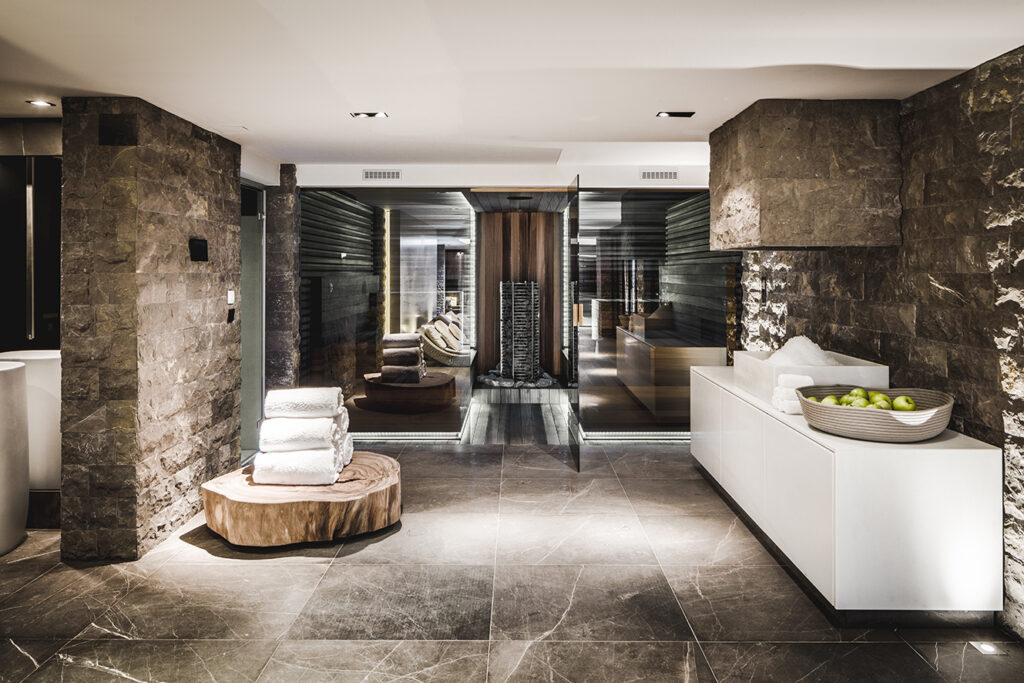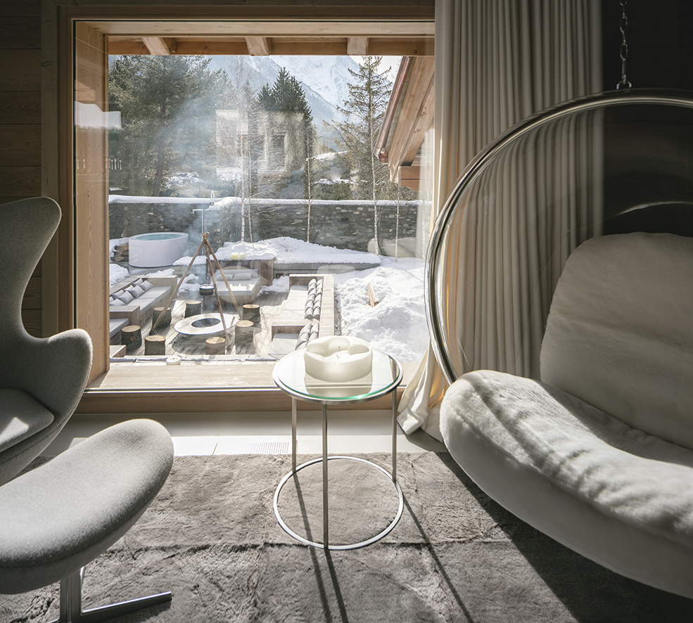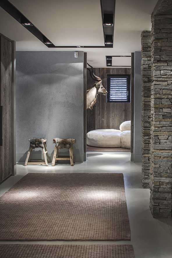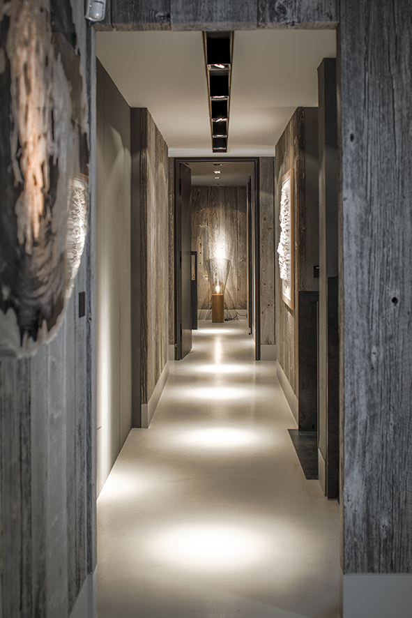 Wolterinck ontwierp de volledige interieurs van twee houten chalets in de Franse Alpenplaats Chamonix. Het ontzagwekkende berglandschap vormde een belangrijke inspiratiebron. De chalets – een hoofdhuis en een gastenverblijf – zijn met elkaar verbonden door een ondergrondse wellness. Door in beide chalets dezelfde materialen op verschillende manieren toe te passen, gaf Wolterinck elk chalet een eigen karakter, maar vormen ze samen toch een eenheid.