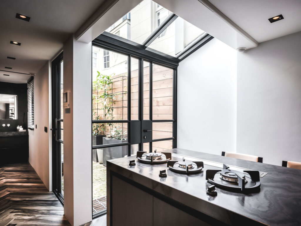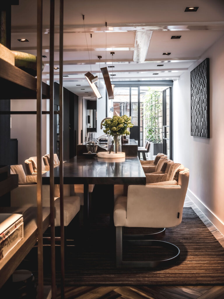 Wolterinck kreeg de opdracht om een smal, ietwat gedateerd grachtenpand om te toveren tot een comfortabele en eigentijdse pied-à-terre. Een rigoureuze verbouwing resulteerde o.m. in open plattegronden op alle verdiepingen en glazen schuifdeuren voor ruimtelijkheid én intimiteit.